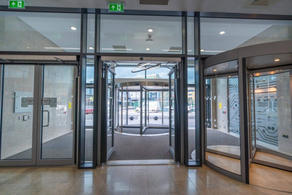 Professional installation of sensor-operated automatic doors for offices, hospitals, and commercial buildings